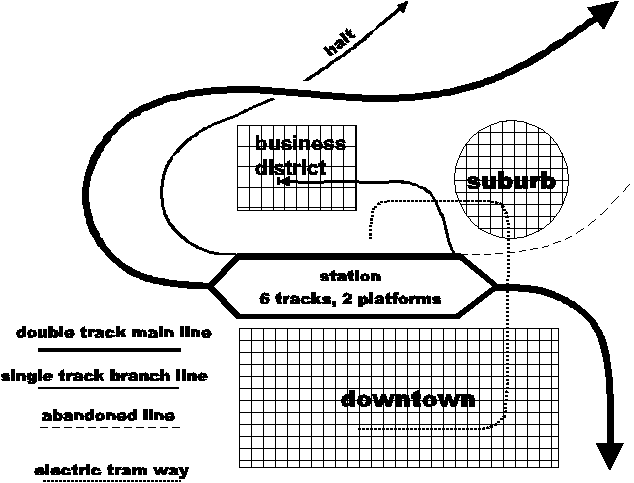 Gewerbebetriebs bedient wird. Vom Bahnhofsplatz der Stadt, über